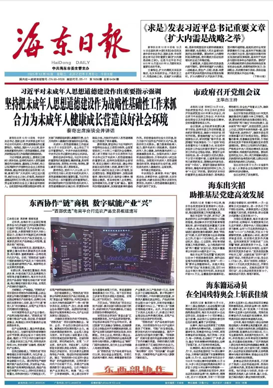 近年來,由海東市工業(yè)園區(qū)管理委員會與江蘇省新立訊科技集團攜手打造的“西部優(yōu)選”農(nóng)產(chǎn)品電商平臺,以區(qū)塊鏈、大數(shù)據(jù)等數(shù)字技術(shù)為核心驅(qū)動力,在海東市河湟新區(qū)成功構(gòu)建起高效的現(xiàn)代化農(nóng)產(chǎn)品交易樞紐,讓高原優(yōu)質(zhì)農(nóng)牧產(chǎn)品跨越山河阻隔,直供東部廣闊市場。