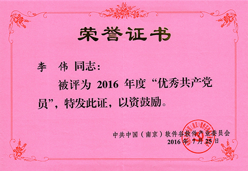 就在6月5日剛獲得“雨花有為青年”提名獎的我司李偉同志近日再次受到南京市雨花臺區表彰,被中共中國(南京)軟件谷軟件文化產業委員會評為2016年“優秀共產黨員”。