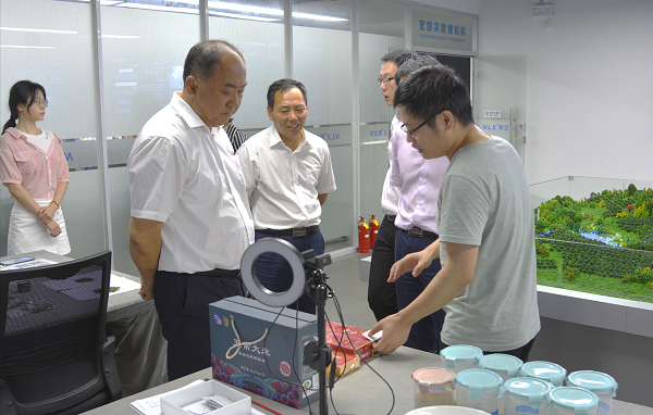 王主任、邢總一行在新立訊高管層的陪同下詳細了解了新立訊公司的發展歷程、業務形態、戰略布局與核心技術以及在農業上的典型應用等。聽取了新立訊在自研AI圖像識別核心技術領域,“愛查必查”鑒真溯源大數據云平臺的研發、商用、推廣的具體情況。并與新立訊董事長毛霖進行遠程視頻會議交流,雙方圍繞高淳區現代農業產業園、固城湖螃蟹等在鑒真溯源領域展開深入合作事宜進行了討論。