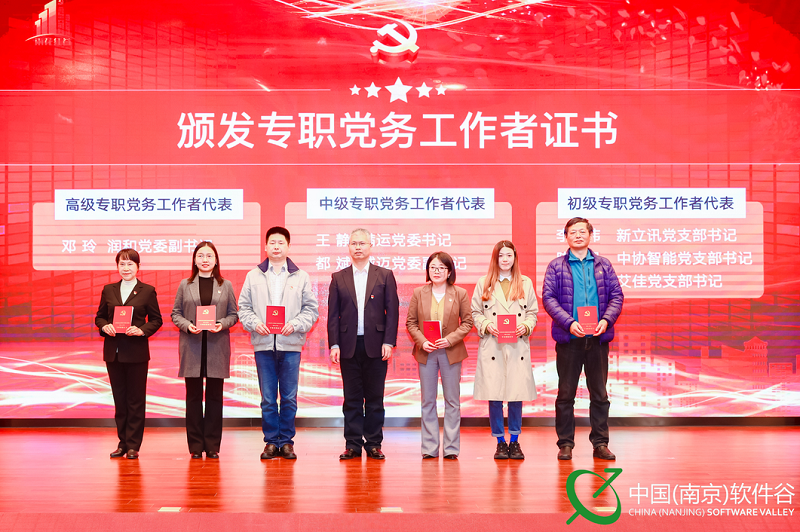 雨花臺區(qū)委組織部常務(wù)副部長夏風(fēng)為“兩新”組織黨務(wù)工作者代表頒發(fā)證書,新立訊黨支部書記李偉榮獲“初級專職黨務(wù)工作者代表”稱號。